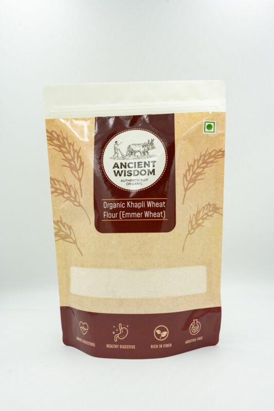 - Organic Khapli Atta: Stone ground Khapli wheat flour is made from a valuable variety of grain that has not yet been modified. This makes Ancient Wisdom stone ground khappli atta nutritionally superior with higher protein and fiber content for better digestion.